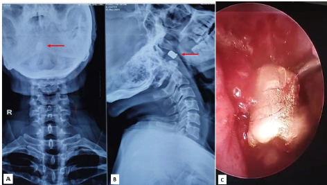 Keywords: Ballistic trauma; retained foreign body; nasopharynx; ethmoid sinus; endoscopic sinus surgery; Computed tomography scan imaging; gunshot wound